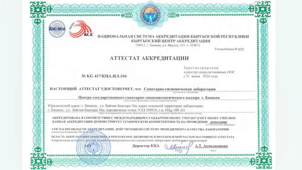 Центр государственного санитарно-эпидемиологического надзора города Бишкек сообщает о завершении процедуры аккредитации лабораторных подразделений в соответствии с международными стандартами.