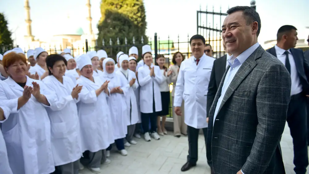 Президент Садыр Жапаров анонсировал повышение зарплаты медиков в 2027 году во время открытия нового здания Кара-Сууйского районного ЦСМ.