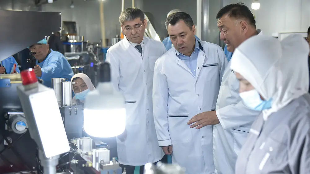 Президент Садыр Жапаров ознакомился с деятельностью компании по производству изделий медицинского назначения «Медимпекс» в ходе рабочей поездки в Ошскую область.